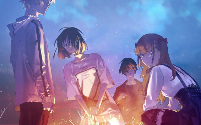 I was fortunate enough to cover this year’s Cardiff Animation Festival and was able to watch an array of films (over 100 in fact!). One of the highlights was loundraw’s debut, Summer Ghost which has a non-traditional running time of 40 minutes meaning that it can be considered either a long short film or a short feature film depending on your point of view. The film follows three struggling teenagers Tomoya (Chiaki Kobayashi), Aoi (Miyuri Shimabukuro), and Ryō (Nobunaga Shimazaki) and their investigation into a local urban legend called the Summer Ghost, a young girl who was rumoured to have killed herself who can be summoned when lighting a firework at an abandoned airfield. When they come face to face with Ayane (Rina Kawaei), the Summer Ghost, the group tries to figure out the truth about Ayane’s death, so she can find peace and move on.